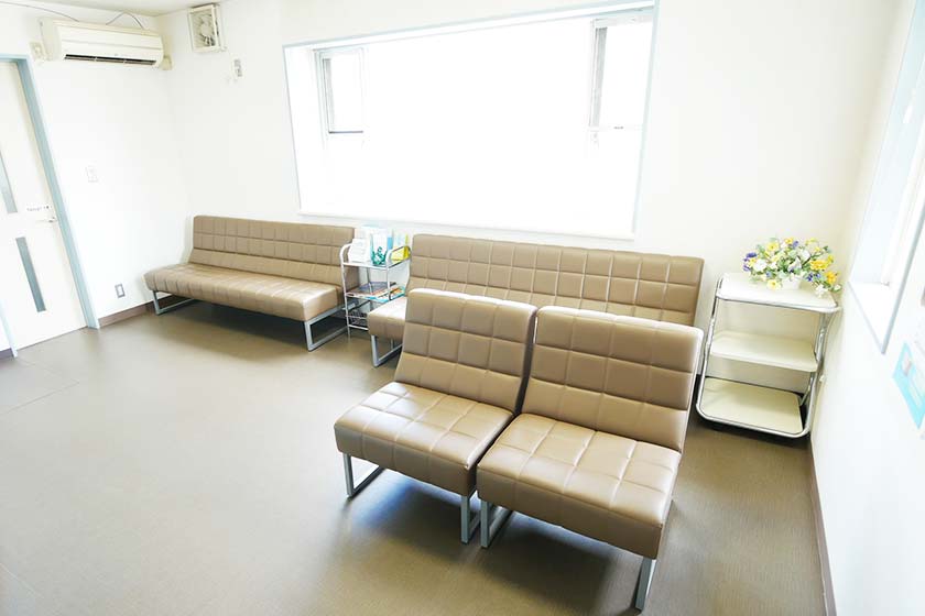 白とブルーを基調とした清潔感のある待合室です。