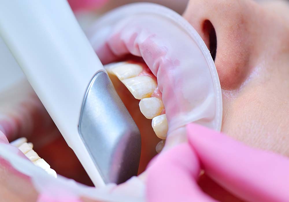 当院では、先進的な口腔内スキャナーを導入しているため、粘土を噛みしめる不快な型取りは不要です。