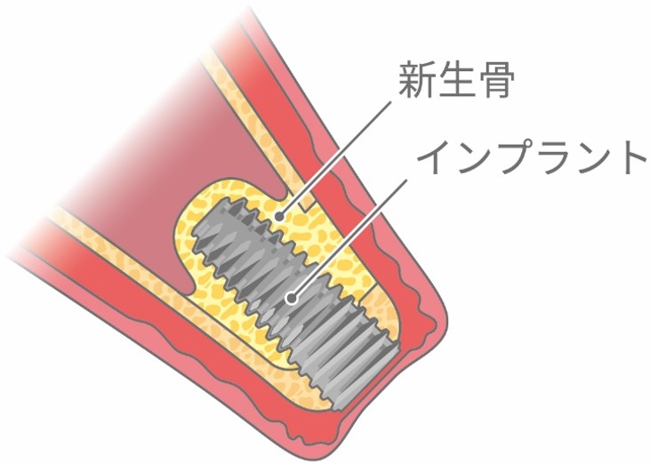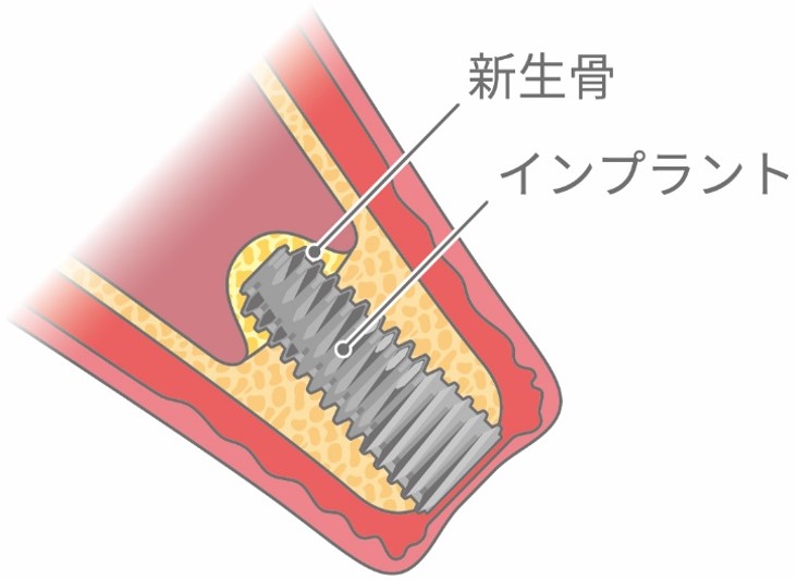 ・インプラント体が顎の骨と結合するのに数ヶ月かかり、その後安定するまでさらに数ヶ月かかります。インプラント埋入後の歯肉や骨の治癒力には個人差があり正確に予測する方法はないため、治療の進行は術後の経過に応じて判断します。