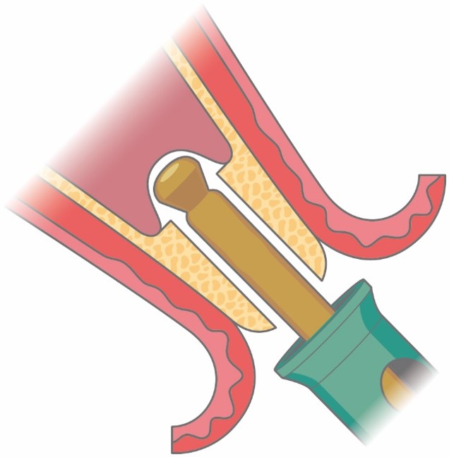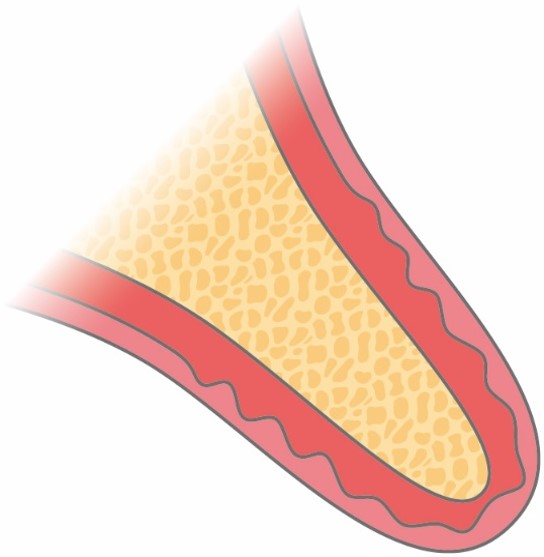 インプラントを埋め込む場所の骨の幅が狭く薄い場合に行います。骨に切れ込みを入れて二つに割り、その間にインプラントを埋入します。